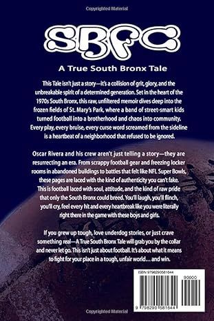 Now discover the real blood, sweat and tears that gave to the South Bronx Football Conference in this well-scripted, 124-page book. The book reads like a movie screenplay that puts you in the heart of the action. You'll see and feel every hit and touchdown in your mind's eye. Read it now before it becomes a movie.